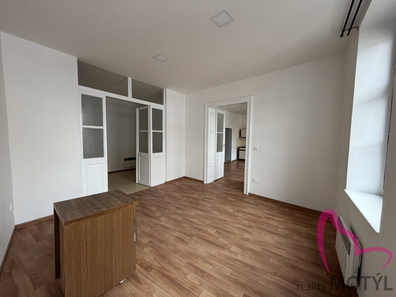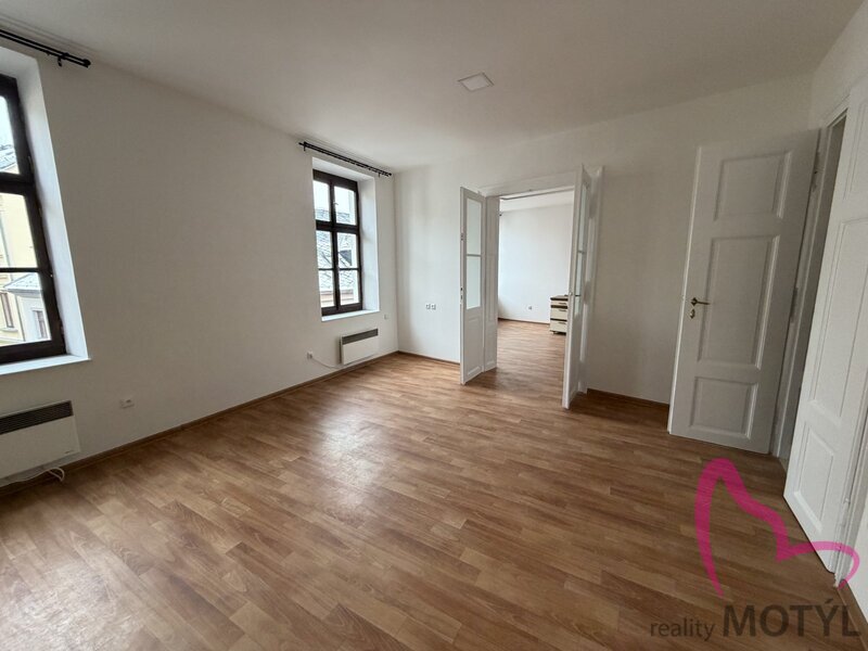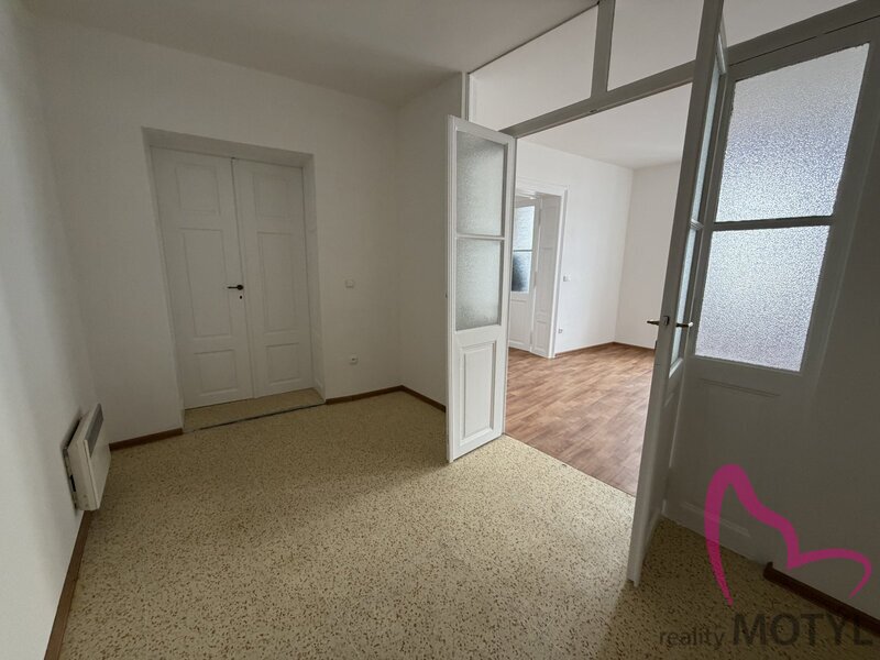 K dlouhodobému pronájmu vám nabízím tento velký prostorný byt o velikosti 3+kk (cca 70 m2), který se nachází ve 3. NP v cihlovém domě na ulici Radniční, ve středu města Šumperka. Oficiálně je byt 2+kk, ale ložnice je rozdělena stěnou se dveřmi na další místnost bez okna. V bytě je velká pěkná kuchyň s obývacím pokojem, koupelna se sprchovým koutem a WC a další samostatné WC a prostorný samostatný pokoj rozdělený stěnou s oknem na ložnici a další pokoj – koukněte na fotky. Hledáme 1–2 seriózní klidné nájemníky. Peněžitá jistota ve výši 24.000 Kč. Zálohy na energie by neměly přesáhnout částku 4.000 Kč (el. 3.200 Kč, voda 800 Kč.). Jsou zde el. přímotopy a el. ohřev vody. Klidný byt, úžasný výhled do centra města. Provize za zprostředkování možnosti uzavřít nájemní smlouvu činí 12.000 Kč. Nájemní smlouva bude na 1 rok s možností prodloužení v případě spokojenosti na obou stranách. Volný od 15. 2. 2026 nebo dle dohody. Aktuálně se v bytě mění sprchový kout. Pro více informací volejte. Reality s lehkostí.